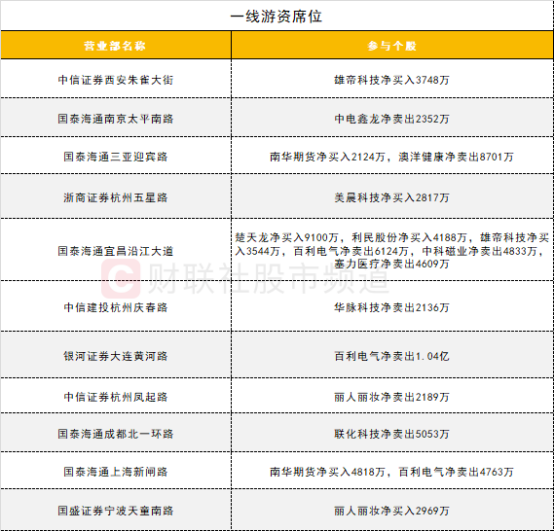 一线游资活跃度下降,百利电气遭三家一线游资席位卖出。量化资金活跃度一般,南华期货遭两家量化席位卖出。