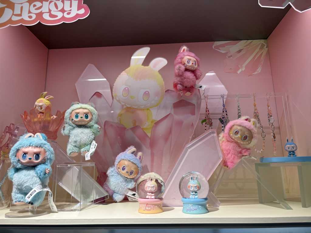 泡泡玛特LABUBU 3.0系列,图片来源澎湃新闻记者。饥饿营销还是产能不足?LABUBU由香港艺术家龙家升创作,传递“表面叛逆、内心柔软”的反差感。LABUBU搪胶毛绒挂件和大娃被热炒,新品发布后引发全球抢购热潮。官方售价不到千元的款式,二手成交价破万元。