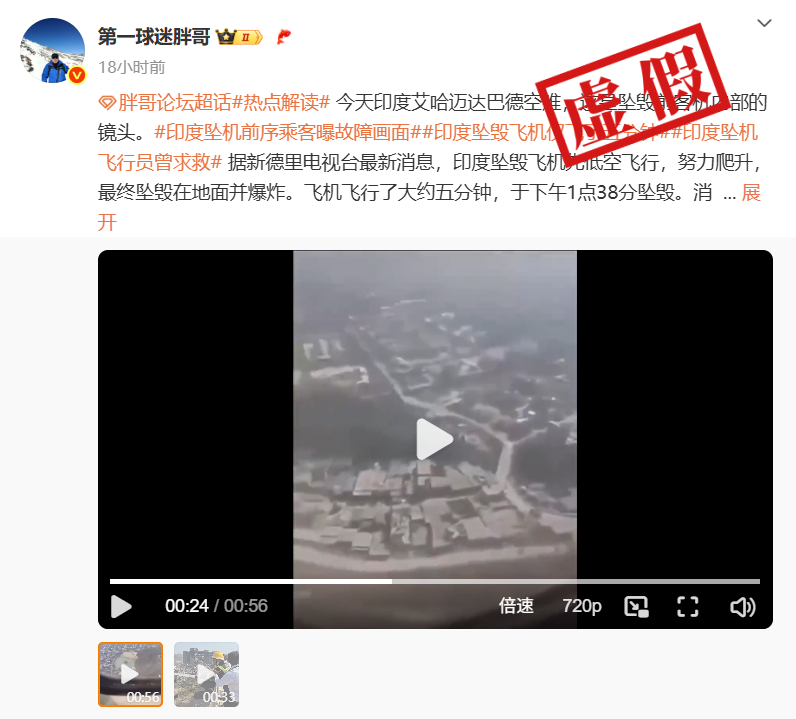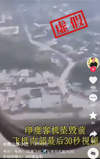 - 网传显示“近日印度客机坠毁前30秒机舱内部画面”的视频,实为2023年尼泊尔雪人航空YT691航班坠毁事故现场,与近期印度客机坠毁事件无关。