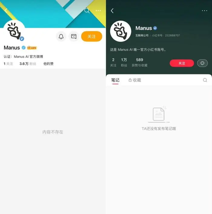记者搜索发现,Manus官方微博和小红书账号的内容均已清空。与此同时,打开Manus的官网发现,其官网首页显示“Manus在你所在的地区不可用”,而此前为“Manus中文版本正在开发中”。