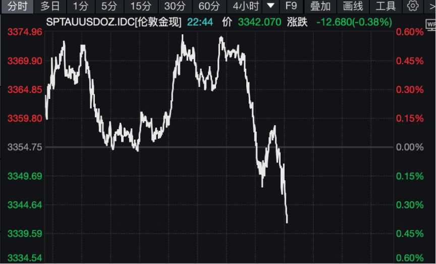 黄金、白银明显跳水。截至发稿,国际现货黄金报3342.07美元/盎司,日内短线跌超50美元,最新跌幅为0.38%。国际现货白银报38.43美元/盎司,涨幅为0.11%,此前一度涨近2%,白银、黄金市场波动显著。