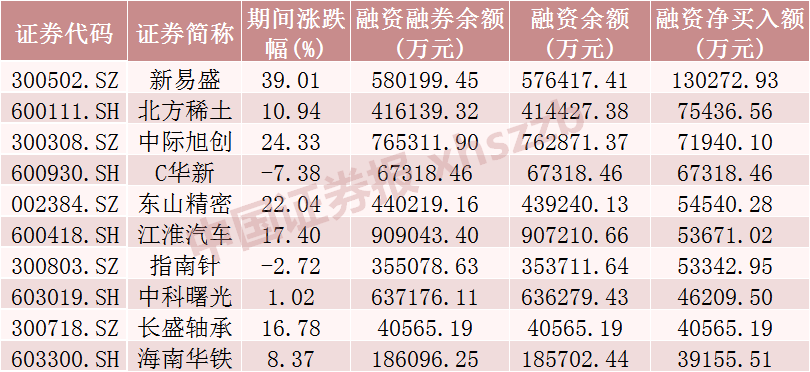 从个股情况来看,上周融资客对104只股票加仓金额超1亿元,加仓居前的10只股票分别为新易盛、北方稀土等,其中新易盛涨幅超39%,表现最佳。这体现了市场对优质个股的青睐。