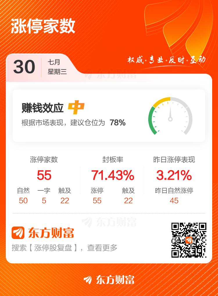 涨停个股数量方面,今日共计55股涨停,另有22只个股盘中一度触及涨停,封板率71.43%,市场活跃度依旧较高。在股市热点方面,今日大盘的走势再次吸引了众多投资者的目光,不同板块间的表现差异也体现了市场的多元化特点。