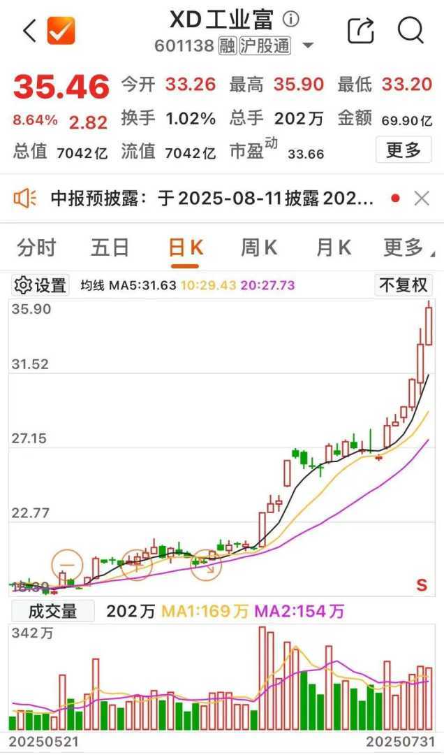 服务器龙头工业富联盘中触及涨停,股价再创历史新高,公司市值突破7000亿元。