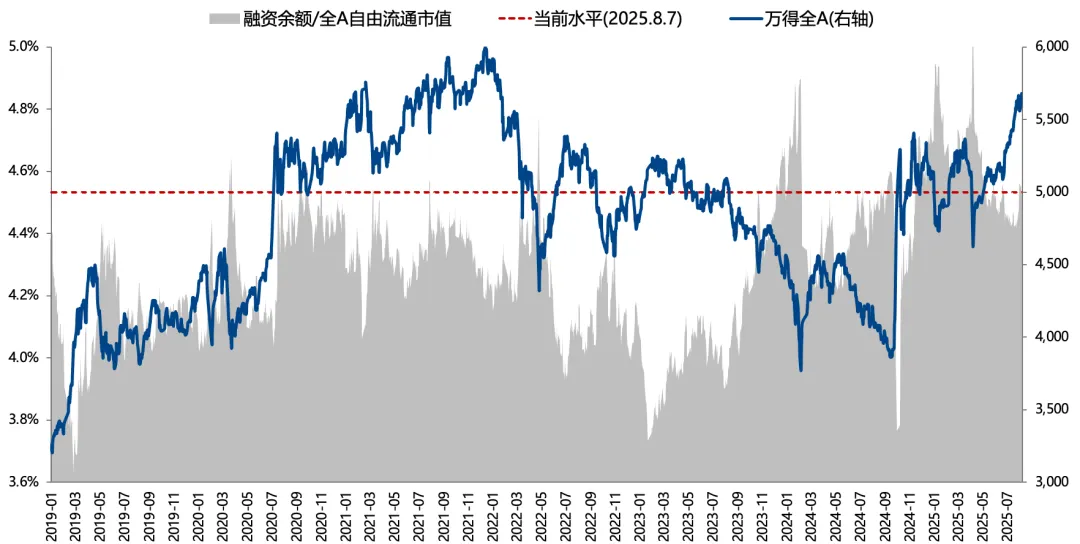 (上图为融资买入额占全A成交额比例,目前位置不算高)