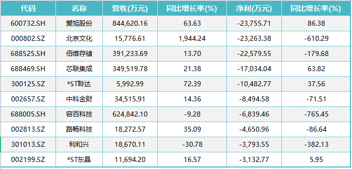 中期净利亏损的21家公司中,爱旭股份以约2.38亿元的亏损额位列首位,但公司净利同比增长86.38%,同比明显减亏。