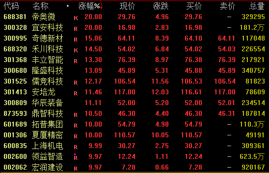 人形机器人概念再度走强,截至收盘,帝奥微、宜安科技20%涨停;奇德新材涨超15%,盘中创历史新高;丰立智能、隆盛科技、儒竞科技等涨超10%。