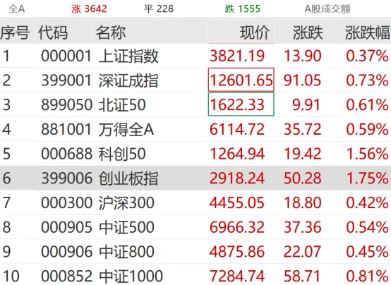 9月10日,上证指数低开0.02%,创业板指涨0.77%,科创50指数涨0.64%,A股市场呈现积极态势。截至发稿,A股主要指数全线飘红,投资者情绪高涨。