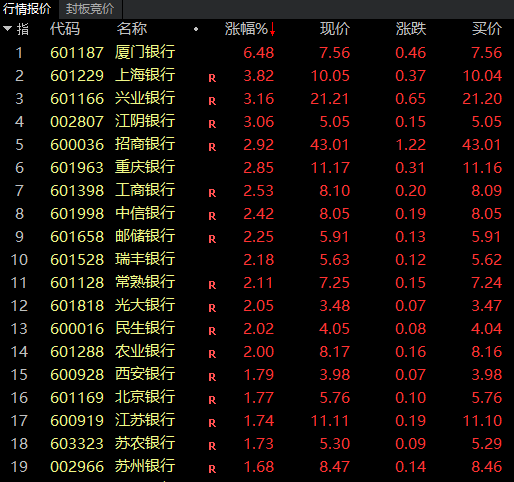 经过近3个月调整后,银行股近期再度活跃,今日早间银行板块指数大涨逾2%,创历史新高。证券要闻显示,板块内所有个股飘红,厦门银行、兴业银行、上海银行、招商银行等涨幅居前。