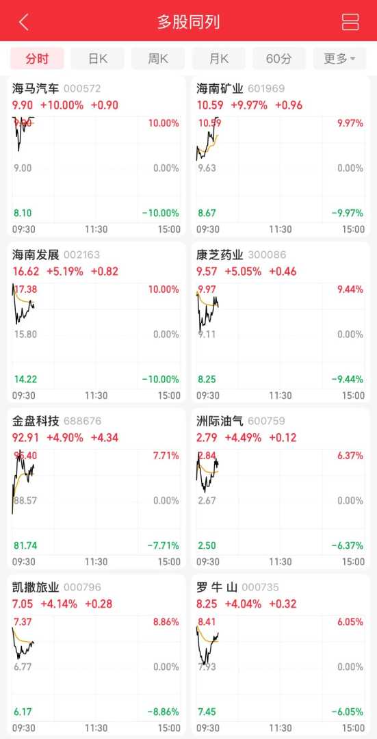 海南自贸区概念大幅高开,海马汽车6天5板,康芝药业、海南发展、罗牛山等涨幅靠前,自贸区政策红利持续释放。同时,核电概念震荡拉升,海陆重工5连板,兰石重装走出7天4板,深圳新星2连板,核电板块亦表现不俗。