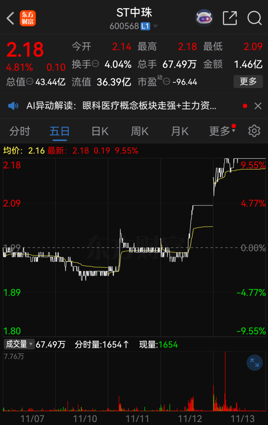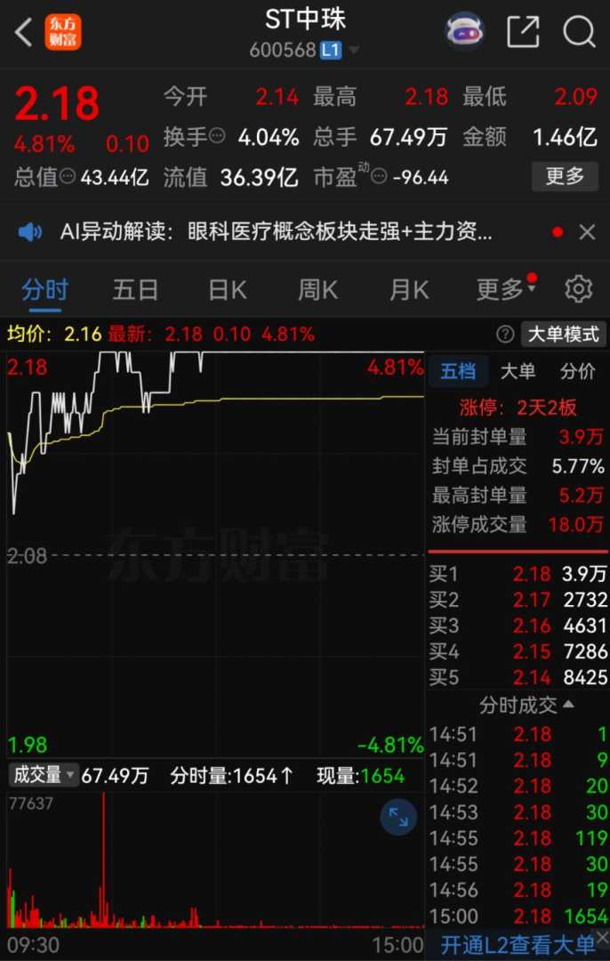 交易进行期间ST中珠股价异动