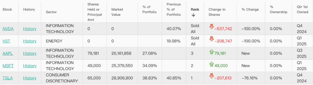 同期,Thiel Macro还减持约21万股的特斯拉股票,不过特斯拉仍以约39%的占比位居其投资组合首位。此外,Thiel Macro在今年第三季度建仓买入微软和苹果的股票。
