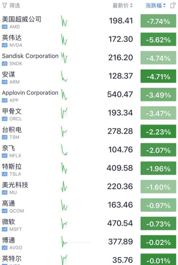 谷歌股价一度上涨近3%,在市场预期Meta计划斥资数十亿美元采购谷歌AI芯片的报道推动下,这家搜索巨头距离4万亿美元市值又近了一步。英伟达股价则下跌约6%。超微半导体(AMD)和甲骨文(Oracle)股价同样走低。