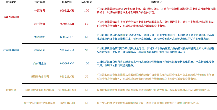 传统红利策略以中证红利、红利指数为代表,聚焦股息率本身,体现了对高股息的纯粹追求。