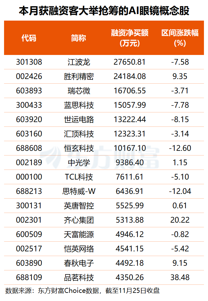 阿里巴巴财报显示,第三季度营收2478亿元,同比增长15%,AI产品收入连续9个季度三位数增长。阿里加速推出AI产品,如千问APP,一周下载量超1000万。首款自研双显AI眼镜夸克AI眼镜2025即将发布,支持多种阿里生态功能,已预售10小时销量第一。AI眼镜赛道竞争激烈,全球出货量增长迅速,预计2026年市场爆发。杠杆资金抢筹AI眼镜概念股,超七成年内股价上涨。