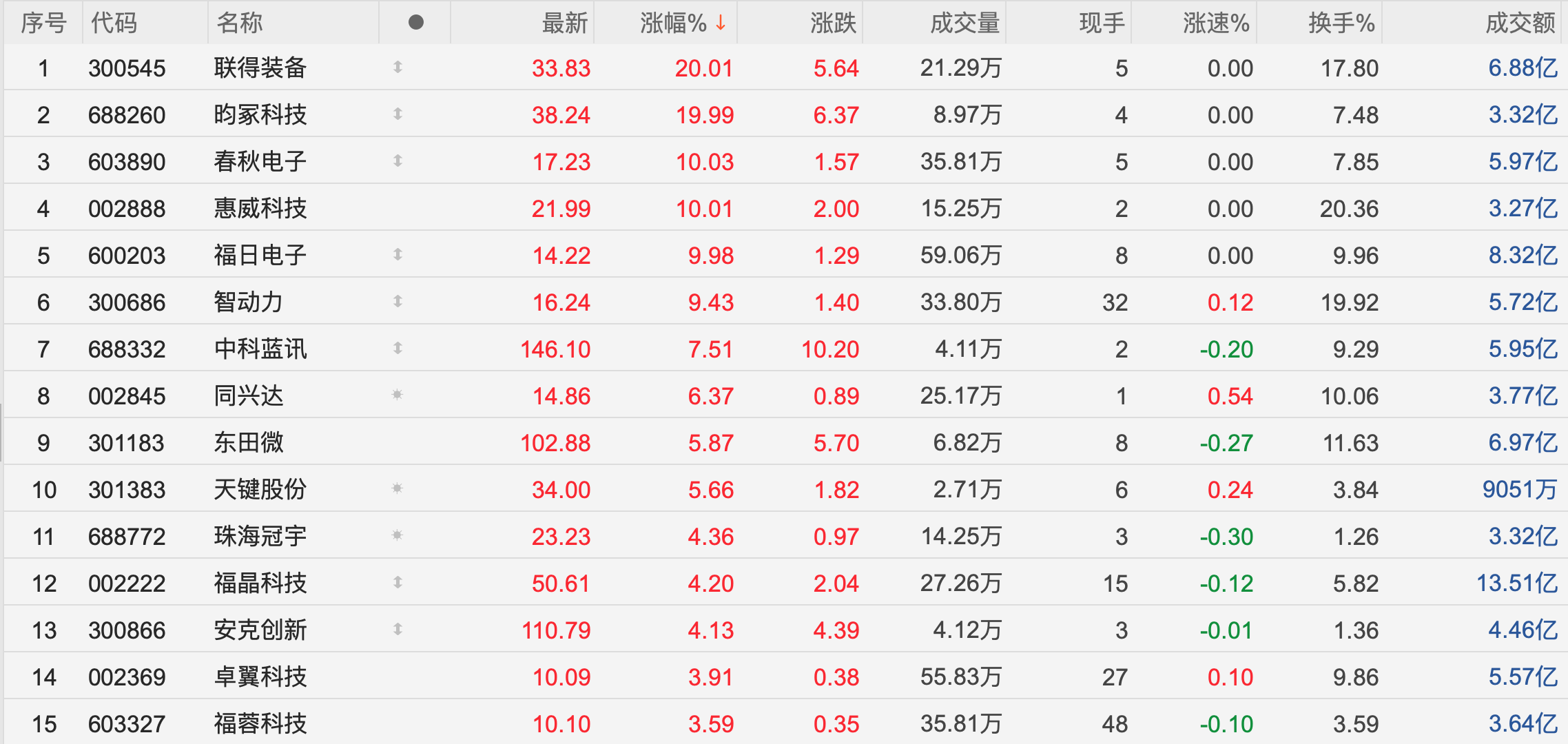 11月27日,A股消费电子概念板块迎来全面爆发,多只个股强势涨停,板块整体表现亮眼。截至午间收盘,联得装备(300545.SZ)、昀家科技(688260.SH)、春秋电子(603890.SH)、惠威科技(002888.SZ)和福日电子(600203.SH)涨停。此外,智动力(300686.SZ)、中科蓝讯(688332.SH)、同兴达(002845.SZ)和东田微(301183.SZ)等个股涨幅也位居前列,板块内多数个股实现上涨。