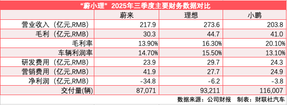 至11月26日晚,“蔚小理”三家造车新势力相继披露三季度财报。