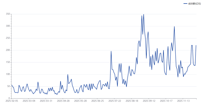 作为CPO板块核心热股,新易盛的市场关注度一直保持较高水平。从量能数据上看,其此次7连涨行情期间(11月25日至12月3日)日均成交额近174.53亿元,在整个A股市场中位居第二位,仅次于同为CPO龙头股的中际旭创(212.82亿元)。其中,新易盛今日全天成交额达221.02亿元,创10月30日以来近1个月新高。
