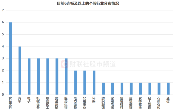 按行业板块统计,目前6连涨及以上的个股中,食品饮料、汽车股数量较多,其分别占比近15.4%、10.3%,同时还涵盖电子、机械设备、基础化工、交通运输、医药生物、电力设备、公用事业、环保板块。若从证券板块来看,主板股占比较高,其中,深市主板、沪市主板股分别占比近46.2%、25.6%,创业板、科创板、ST股则各占20.5%、5.1%、2.6%。