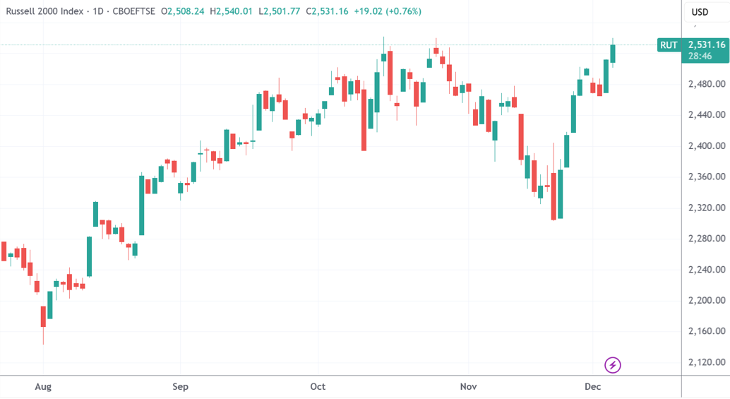 作为最能代表美股市场小盘股的指标,罗素2000指数收涨0.76%,突破10月27日创出的前高。