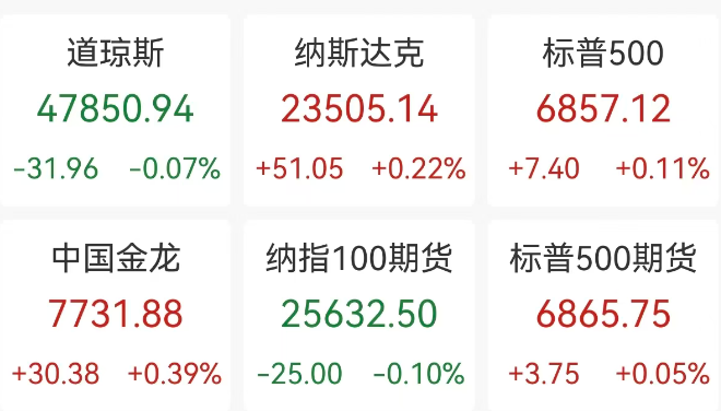 美东时间周四,美股三大指数小幅高开后涨跌不一,纳指、标普500指数收涨,道指跌0.07%。