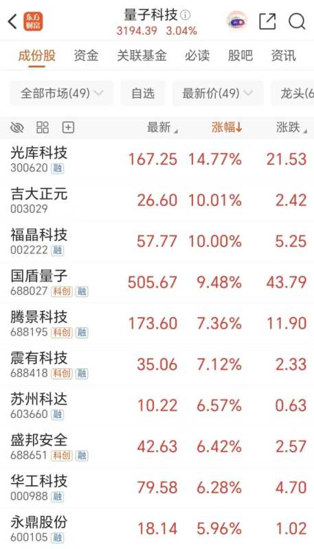 周一量子科技概念股大涨超3%,市场看好其广阔前景。
