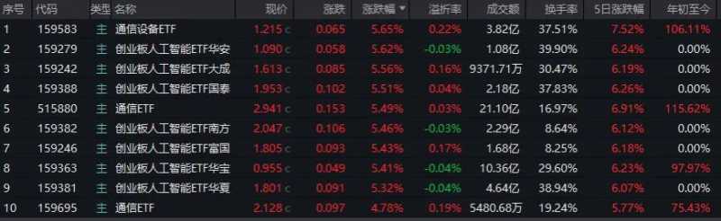 AI(人工智能)算力概念爆发,通信等主题ETF(交易型开放式指数基金)再度领涨全场ETF。