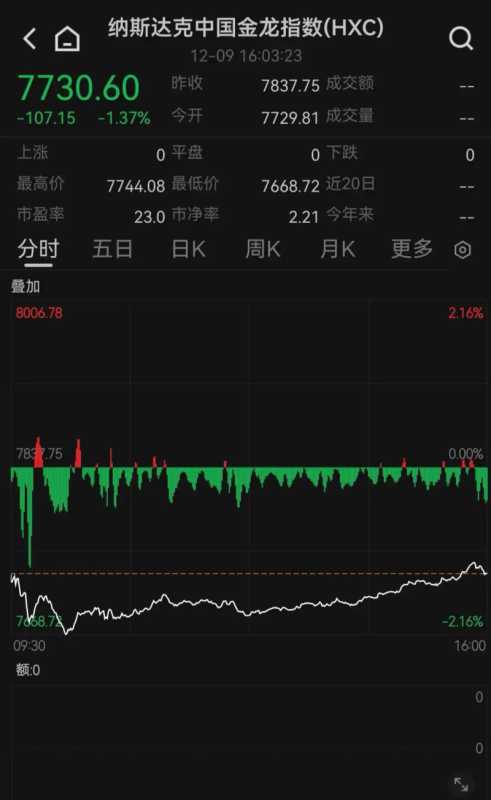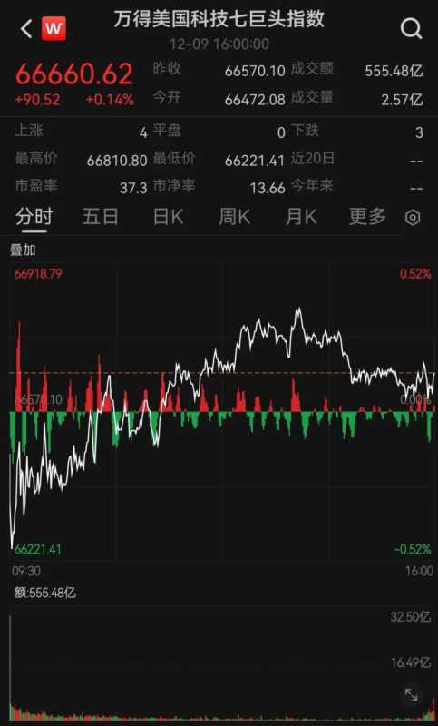 当地时间12月9日,美股三大股指收盘涨跌不一,道指跌0.38%,标普500指数跌0.09%,纳指涨0.13%。