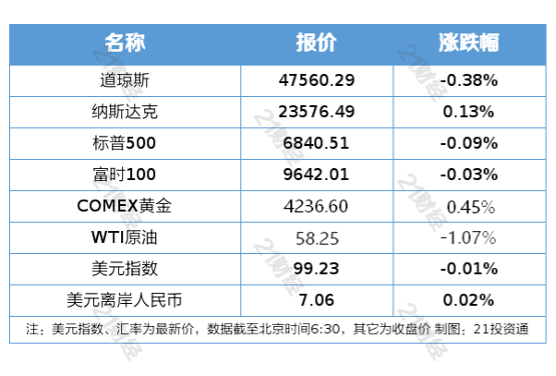 隔夜外盘纽约股市三大股指12月9日涨跌不一。截至当天收盘,道琼斯工业平均指数比前一交易日下跌179.03点,收于47560.29点,跌幅为0.38%;标准普尔500种股票指数下跌6点,收于6840.51点,跌幅为0.09%;纳斯达克综合指数上涨30.59点,收于23576.49点,涨幅为0.13%。