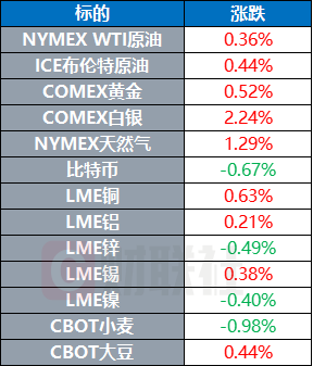 WTI原油期货收涨0.36%,报58.46美元/桶。布伦特原油期货价格收涨0.44%,报62.21美元/桶。