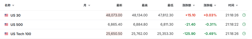 周四(12月11日)美股盘前,三大指数期货涨跌不一。截至发稿,道琼斯指数期货涨0.03%,标普500指数期货跌0.31%,纳斯达克100指数期货跌0.49%。