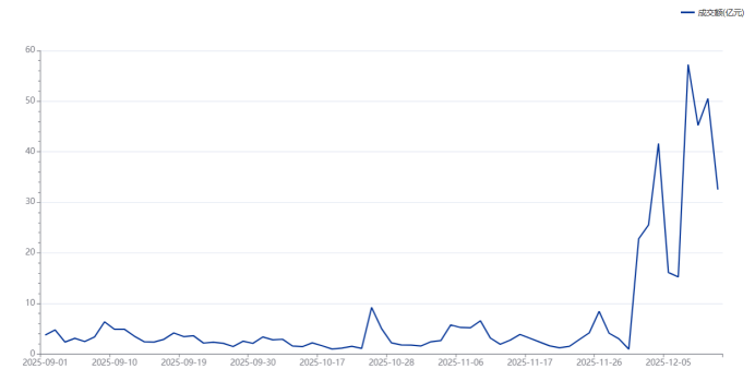 受商业航天等概念提振,顺灏股份自11月末以来股价迎来快速攀升,截至今日收盘,其近11个交易日中累计共有7次涨停。从量能数据上看,顺灏股份曾于12月9日全天成交额50.53亿元,创上市以来最高纪录,同时,其12月11日(50.53亿元)、12月10日(45.22亿元)成交额分别位列历史第二、第三名,而今日成交额(35.51亿元)则位居第九位。