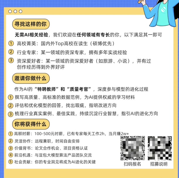 招聘要求与以往截然不同:985/顶尖院校硕士起步,部分需博士及2年以上行业经验。工作内容不再是“标注撰写”,而是撰写高难度专业题目、构建推理链条、解析模型输出并纠错。时薪从100元跃升至400元以上,更有甚者上不封顶。