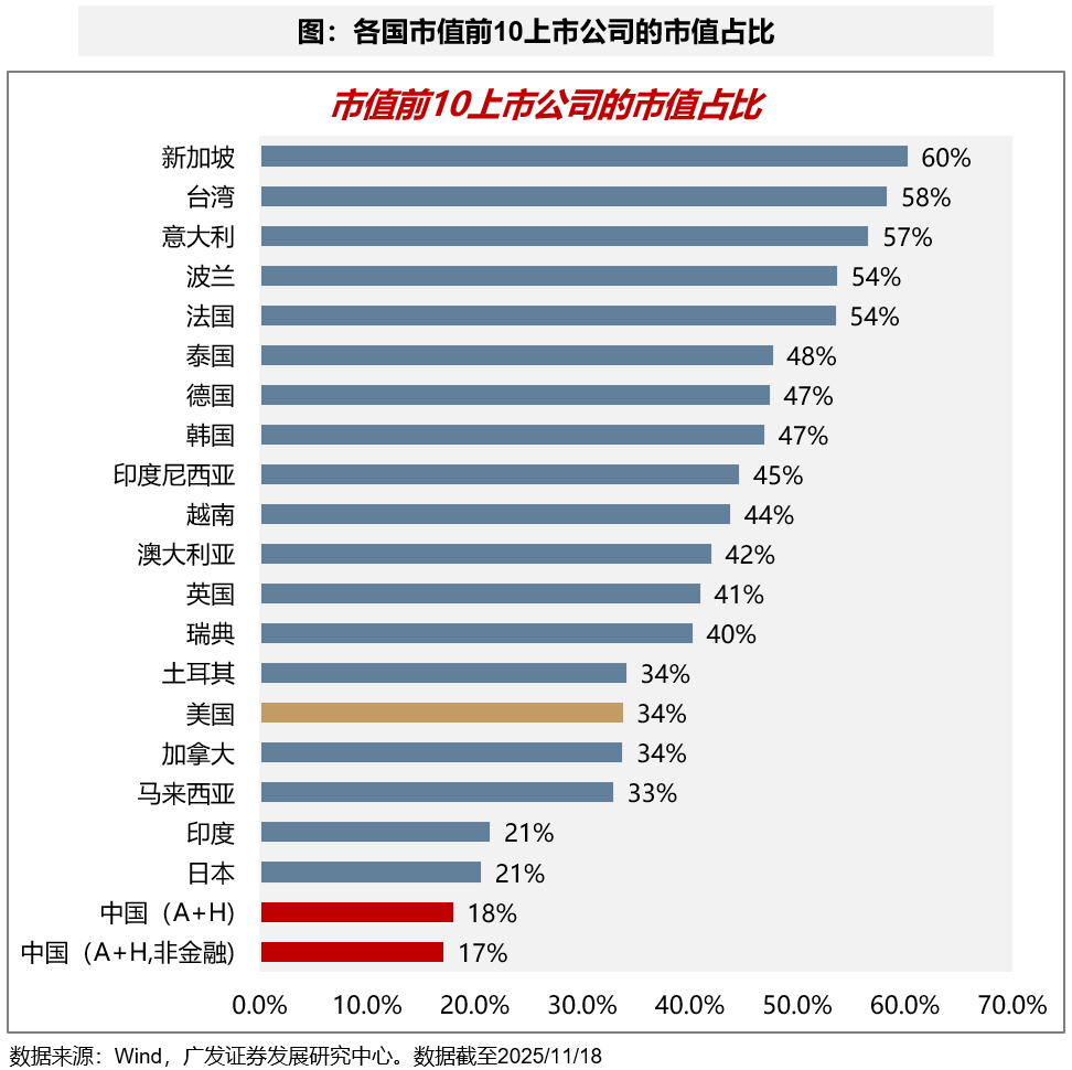 AH股与全球共振,25年也是全球主要权益资产的牛市,且全球股市呈现出趋同的交易特征:科技+资源,估值驱动,市值集中度迈向新高。