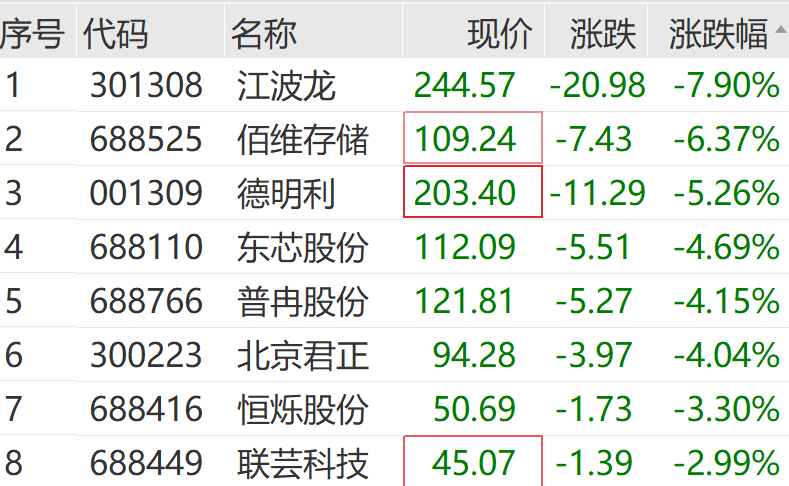 存储器板块同步走低,江波龙、佰维存储、德明利等多股不振。