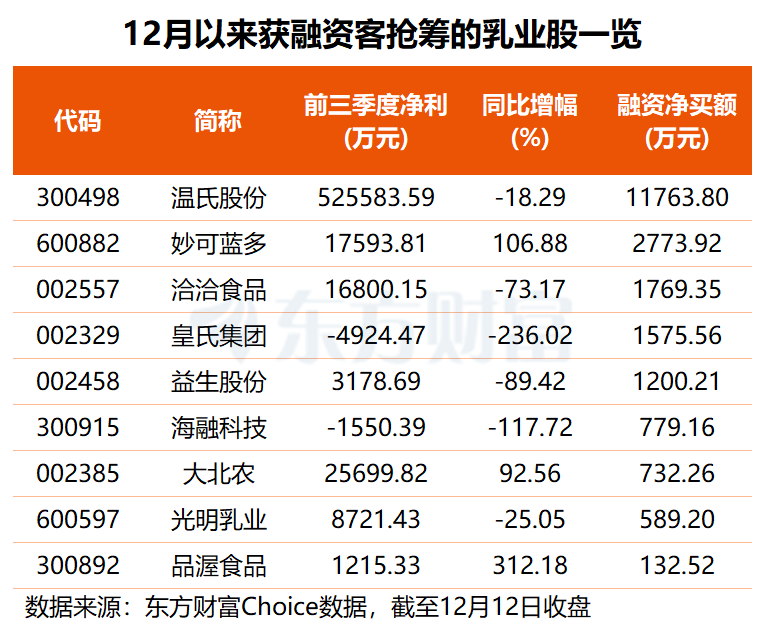 资金方面,有9只乳业股本月获得杠杆资金加仓,其中,温氏股份获融资客抢筹约1.18亿元,妙可蓝多获融资净买入约2773.92万元,洽洽食品、皇氏集团、益生股份融资净买额均超千万元。