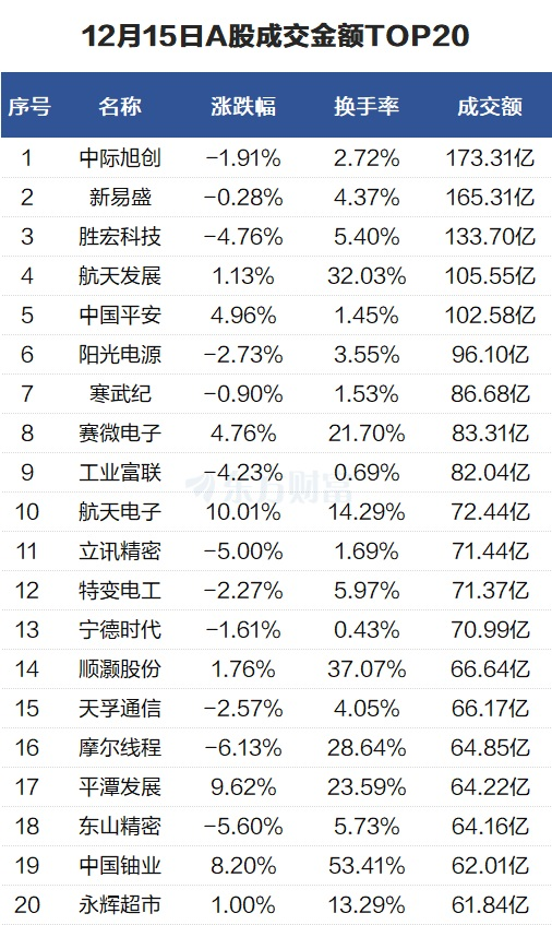 本文介绍了12月15日股市行情,包括上证指数、深证成指、创业板指的跌幅以及个股成交情况。