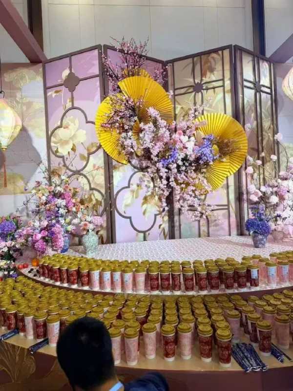 婚礼现场部分视频及图片流出,给宾客准备的饮品是大量霸王茶姬奶茶。