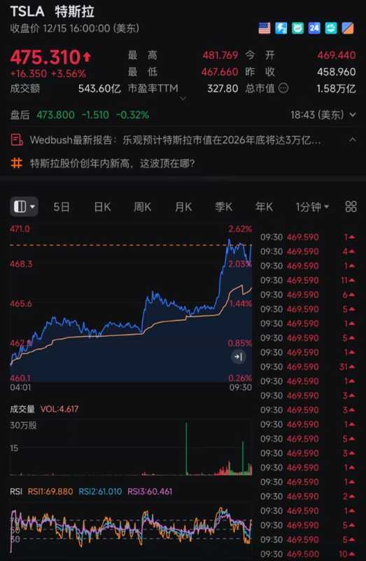 当地时间周一,美股三大指数集体收跌。特斯拉股价创近一年新高。马斯克身价突破6000亿美元。iRobot大跌超72%。纳斯达克计划推出股票近乎全天候交易机制。