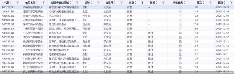 根据安排,12月15日—19日这周,沪深北交易所共有电科蓝天、尚水智能等6家企业即将迎来上会大考。从单周上会IPO企业数量来看,仅次于12月8日—12日的7家企业上会,位列年内第二。