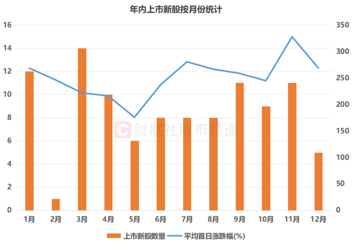 近期,新股市场继续保持活跃,截至今日收盘,月内(12月)上市的5只新股平均首日涨幅近268.6%,在年内各月份中位居第三位,仅低于11月(327.6%)、7月(280.4%)。具体个股来看,摩尔线程首日涨幅425.46%,在月内新股中涨幅居首,精创电气、中国铀业、昂瑞微、百奥赛图4股首日则分别上涨近330.74%、280.04%、160.11%、146.63%。