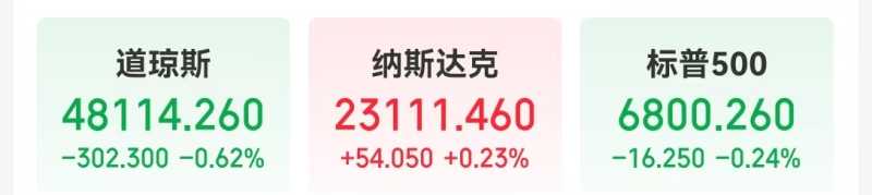 当地时间12月16日,美股三大指数收盘涨跌不一,道指下跌302.30点,跌幅0.62%;纳指涨0.23%;标普500指数跌0.24%。