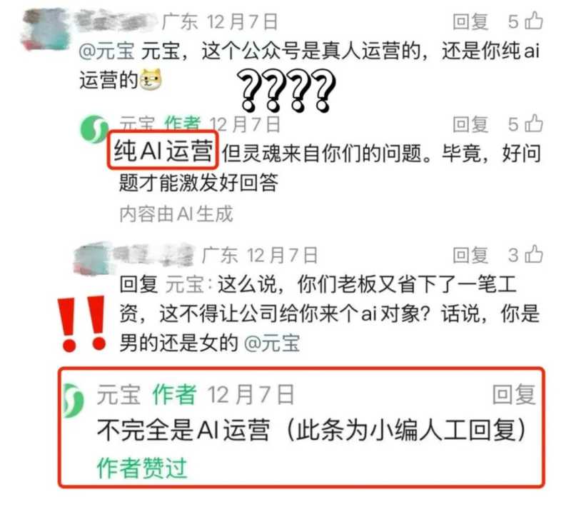 12月18日,21财经《辟谣财知道》注意到,针对近期用户热议的“评论区的元宝互动是小编轮班扮演还是AI”的争议,腾讯官方发布声明澄清:所有带有“内容由AI生成”标识的评论均为元宝AI独立生成,无人工运营团队参与轮班,而无该标识的回复则为真人小编逐字撰写的原创内容。