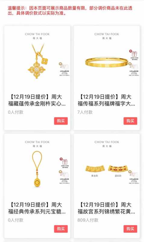 周大福今年于3月和10月底进行了两次调价,加上本次,年内累计已涨价三次。