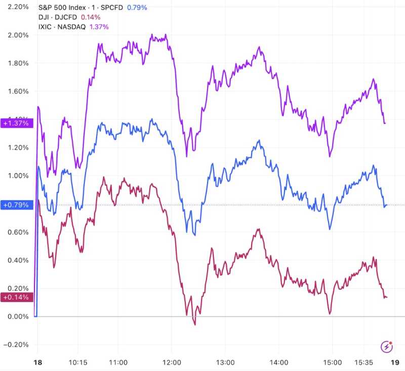 截至收盘,道琼斯指数涨0.14%,报47,951.85点;标普500指数涨0.78%,报6,774.76点;纳斯达克指数涨1.38%,报23,006.36点。