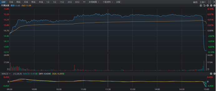 今日(12月19日),市场多只高标股尾盘回撤。其中,福建板块龙头平潭发展5分钟内从近5%涨幅直线跳水至超7%跌幅,日内振幅高达14.63%,股价上演“坐滑梯”式急跌。