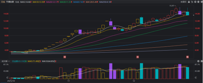 平潭发展此次尾盘突发的断崖式跳水,迅速点燃市场讨论热度,关于此次下跌是“真摔”还是“假摔”,投资者热议不休、分歧显著。从其近期的股价走势上看,平潭发展四季度以来股价波动剧烈,不仅为“涨停常客”,同时也多次迎来跌停行情。具体数据来看,其10月以来一共涨停16次,跌停4次,剔除ST股,其涨跌停合计次数在整个A股中位居第一。