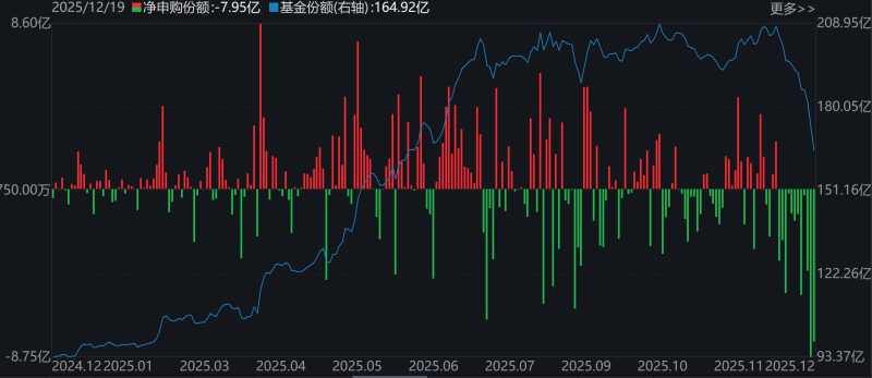另外,近期火爆的军工板块遭遇资金抛售,军工龙头ETF(512710)、军工ETF(512660)基金份额均快速回落。
