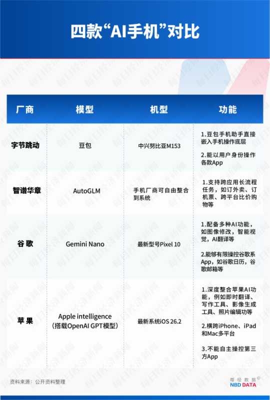 这场路线之争的导火索,是12月初字节跳动联合中兴努比亚发布的“豆包手机”nubia M153。这款手机凭借跨应用AI操作能力搅动行业:用户只需发出语音指令,AI便能完成订外卖、发微信、比价购物等一系列跨App任务,其技术核心是GUI(图形用户界面)多模态大模型与系统级权限的深度绑定。
