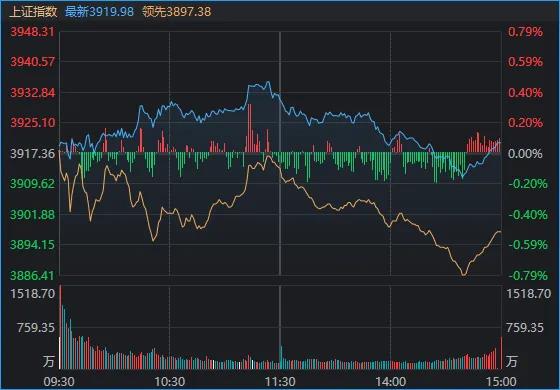 全市场近3900只个股下跌。沪深两市成交额1.9万亿元,较上一个交易日放量379亿元。